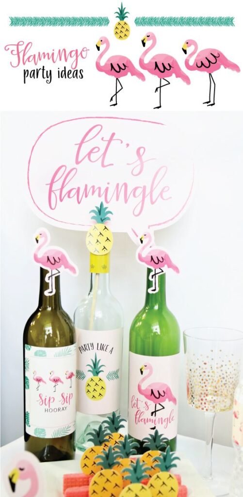Además, puedes personalizar las botellas y envases de las bebidas con etiquetas y adornos de flamencos y piñas para añadir un toque especial a tu decoración de flamencos.