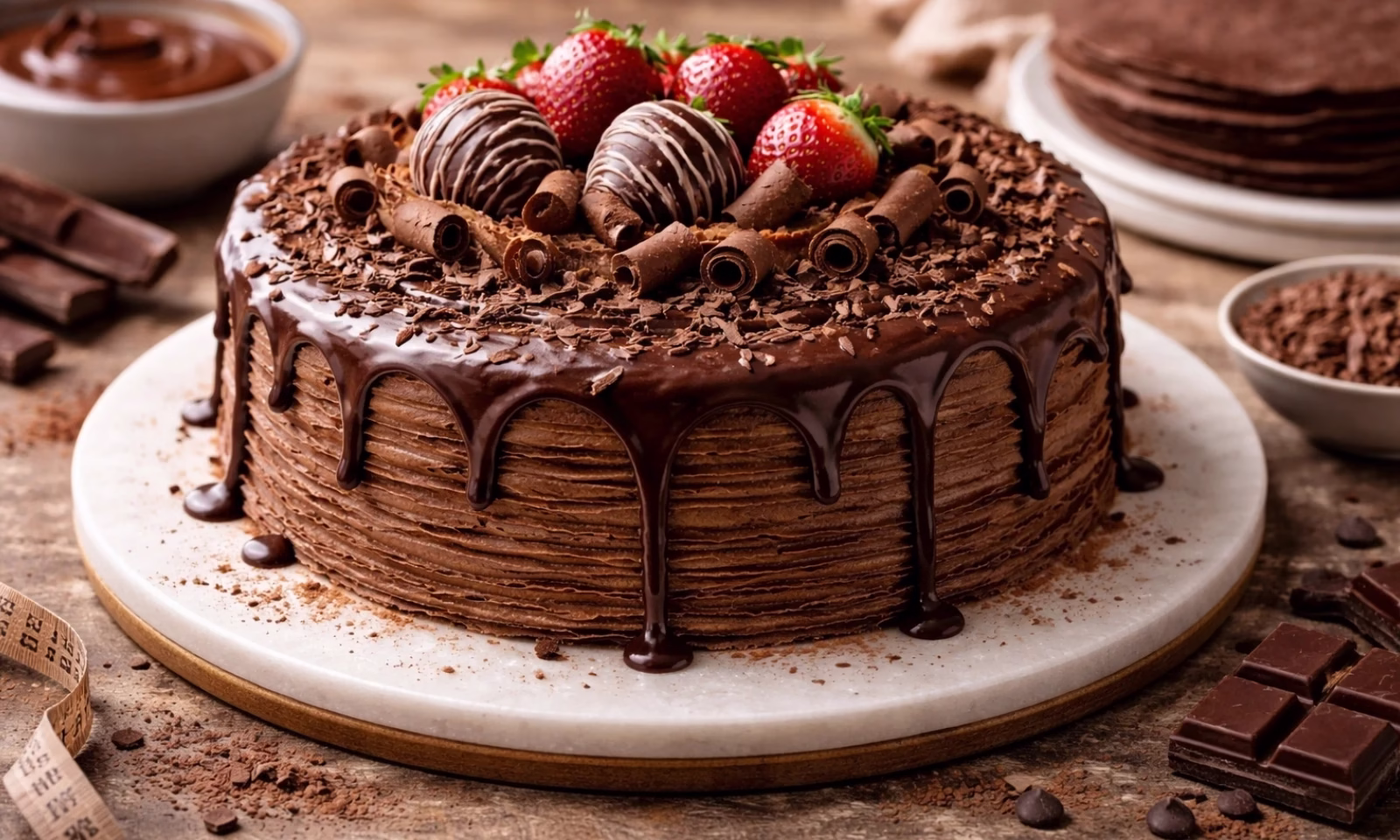 Pastel de crepas de chocolate: variación estable