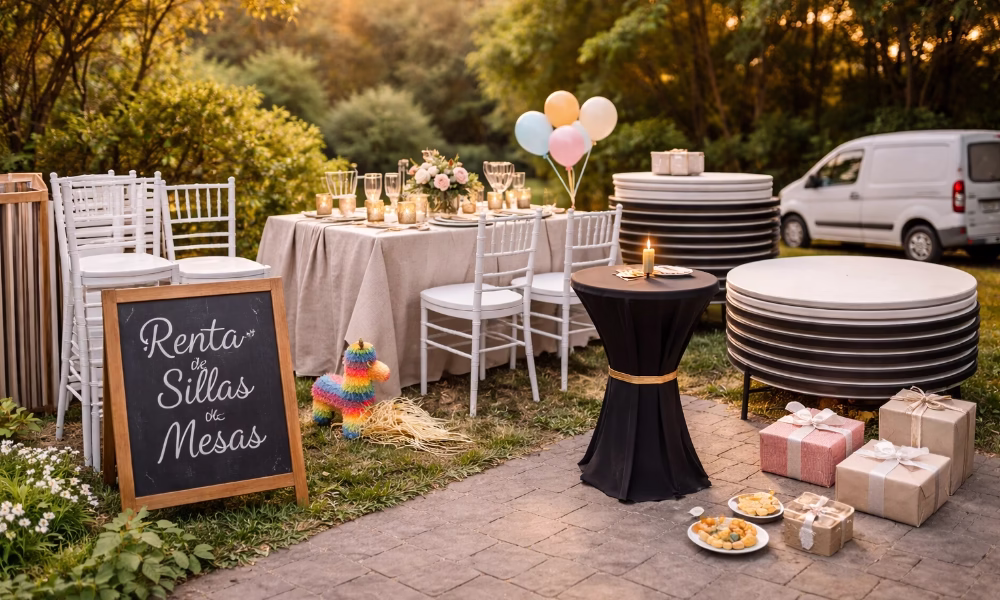 Estás buscando renta de sillas y mesas y lo que quieres es cero líos: que lleguen a la hora, limpias y completas (sin que falte una mesa cuando ya la gente está llegando). Además, si tú lo buscas como alquiler o como alquiladora, aquí tienes una guía clara para cotizar rápido y comparar opciones.
